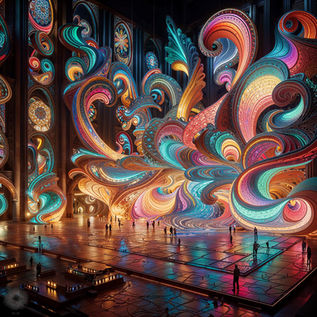 Animating different parts of a central atrium in 4k-upscaled images. The process was more manual by stitching parts of the video.